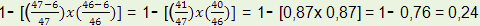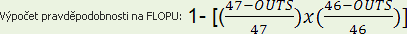 Číslo 47 reprezentuje ve vzorcích karty, které jsou ještě k dispozici po FLOPu a číslo 46 udává to samé po TURNu. Jestliže bychom tuto kalkulaci provedli například pro případ označený jako TWO OVERCARD DRAW, potom by výpočet mohl vypadat asi takto: tato situace nám poskytuje 3 OUTS pro každou OVERCARD, takže můžeme dohromady počítat s celkovým počtem 3 + 3 = 6 OUTS