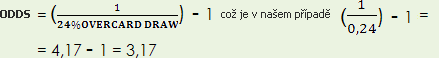 V tomto případě máme tedy 24% šanci, že dotáhneme OVERCARDS z flopu na river. Toto procento převedeme na ODDS následujícím způsobem: